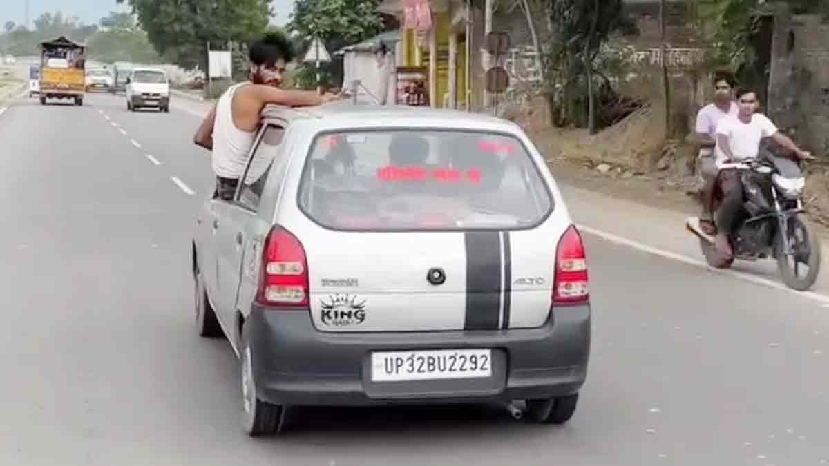 राजधानी लखनऊ के काकोरी रोड से एक चौंकाने वाला वीडियो सामने आया है. वायरल वीडियो में एक युवक चलती कार से बाहर निकलकर स्टंट करता नजर आ रहा है. यह स्टंट न सिर्फ खतरनाक था, बल्कि सड़क पर चल रहे अन्य लोगों की जान भी जोखिम में डाल रहा था.