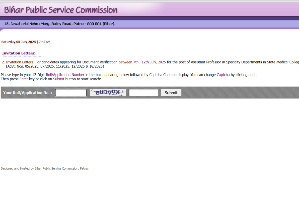 BPSC: बिहार लोक सेवा आयोग (BPSC) ने असिस्टेंट प्रोफेसर (विशेषज्ञ) पदों के लिए दस्तावेज़ सत्यापन का कॉल लेटर जारी कर दिया है. यह एडमिट कार्ड उन उम्मीदवारों के लिए है जिन्होंने विज्ञापन संख्या 05/2025, 07/2025, 11/2025, 12/2025 और 18/2025 के अंतर्गत आयोजित परीक्षा में सफलता हासिल की थी. अब इन उम्मीदवारों को डॉक्यूमेंट वेरिफिकेशन के लिए कॉल लेटर डाउनलोड कर निर्धारित तिथि और स्थान पर अपने दस्तावेज प्रस्तुत करने होंगे।
