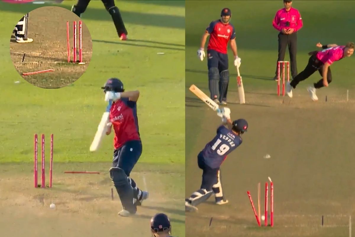 8 जुलाई को इंग्लैंड में खेले गए Vitality Blast मुकाबले में एक ऐसा ही नजारा देखने को मिला, जब एक तेज गेंदबाज ने स्टंप को सिर्फ तोड़ा नहीं, बल्कि उसे ऊपर से नीचे की ओर बीच से फाड़ दिया. अब आप सोच रहे होंगे कि स्टंप चीरना कैसे मुमकिन है? दरअसल, आमतौर पर जब गेंद स्टंप्स से टकराती है तो वे गिरते हैं या टूटते हैं, लेकिन यहां स्टंप दो समांतर हिस्सों में विभाजित हो गया जैसे किसी ने आरी से काटा हो.यह अनोखी घटना समरसेट और एसेक्स के बीच खेले गए मुकाबले में घटी, जहां समरसेट के ऑस्ट्रेलियाई तेज गेंदबाज राइली मेरेडिथ ने यह करिश्मा कर दिखाया.