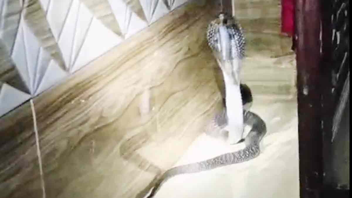वीडियो में किंग कोबरा की फुंकार और फन देखकर रोंगटे खड़े हो गए. जानकारों के अनुसार, किंग कोबरा दुनिया के सबसे जहरीले सांपों में गिना जाता है और इसके डसने से कुछ ही मिनटों में इंसान की जान जा सकती है. स्थानीय लोग इस घटना के बाद से काफी सतर्क हैं और वन विभाग से इलाके में सघन निगरानी की मांग कर रहे हैं. मना जा रहा है कि बारिश के चलते सांप लोगों के घरों में पहुंच रहे हैं.