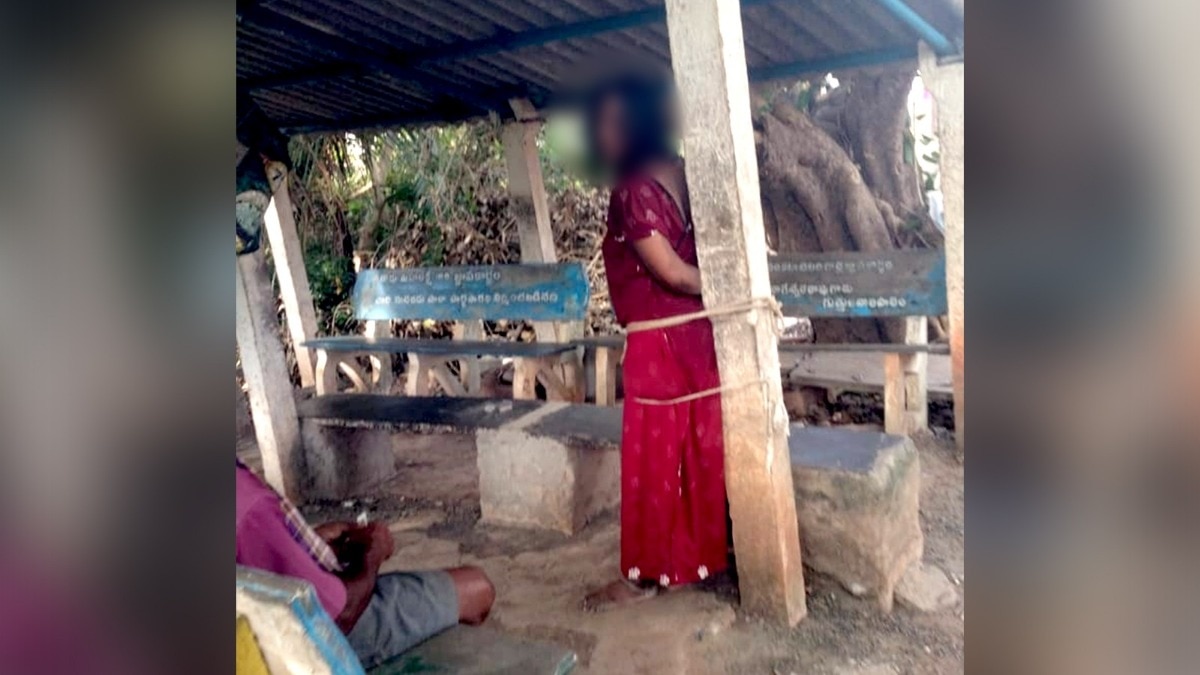 आंध्र प्रदेश के पश्चिम गोदावरी जिले के पलकोडेरु मंडल के मोगल्लू गांव से एक हैरान कर देने वाली घटना सामने आई है. यहां एक महिला को अवैध संबंध के आरोप में खंभे से बांधकर सरेआम पीटा गया.
