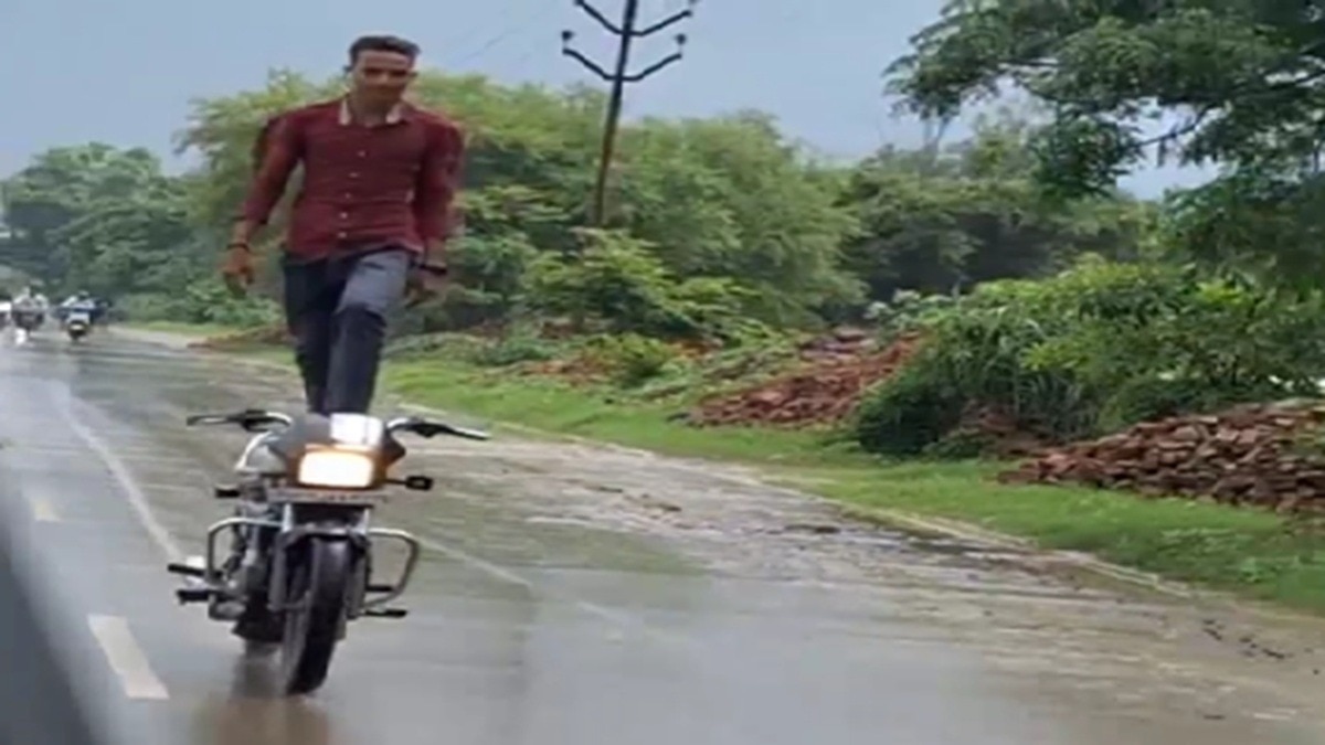 उत्तर प्रदेश के मऊ जनपद में आज सोशल मीडिया पर बाइक पर खड़े होकर बारिश में खतरनाक स्टंट बाजी करते हुए एक युवक का वीडियो बहुत तेजी के साथ वायरल हो रहा है. इस वीडियो में युवक बाइक पर खड़ा है और उसके दोनों कानों में ईयरफोन लगे हैं. यही नहीं उसके एक हाथ में मोबाइल फोन भी दिखाई दे रहा है और वह तेजी के साथ फर्राटे भरते हुए स्टेट हाईवे की व्यस्त सड़क पर यह खतरनाक स्टंट बाजी करते हुए दिखाई दे रहा है . सड़क पर चलने वाले कुछ कार सवार लोगों ने उसकी यह खतरनाक और हैरान कर देने वाली स्टंटबाजी का वीडियो बनाकर सोशल मीडिया पर वायरल कर दिया. जैसे ही यह वीडियो सोशल मीडिया के माध्यम से पुलिस तक पहुंचा तो पुलिस तुरंत हरकत में आ गई.
