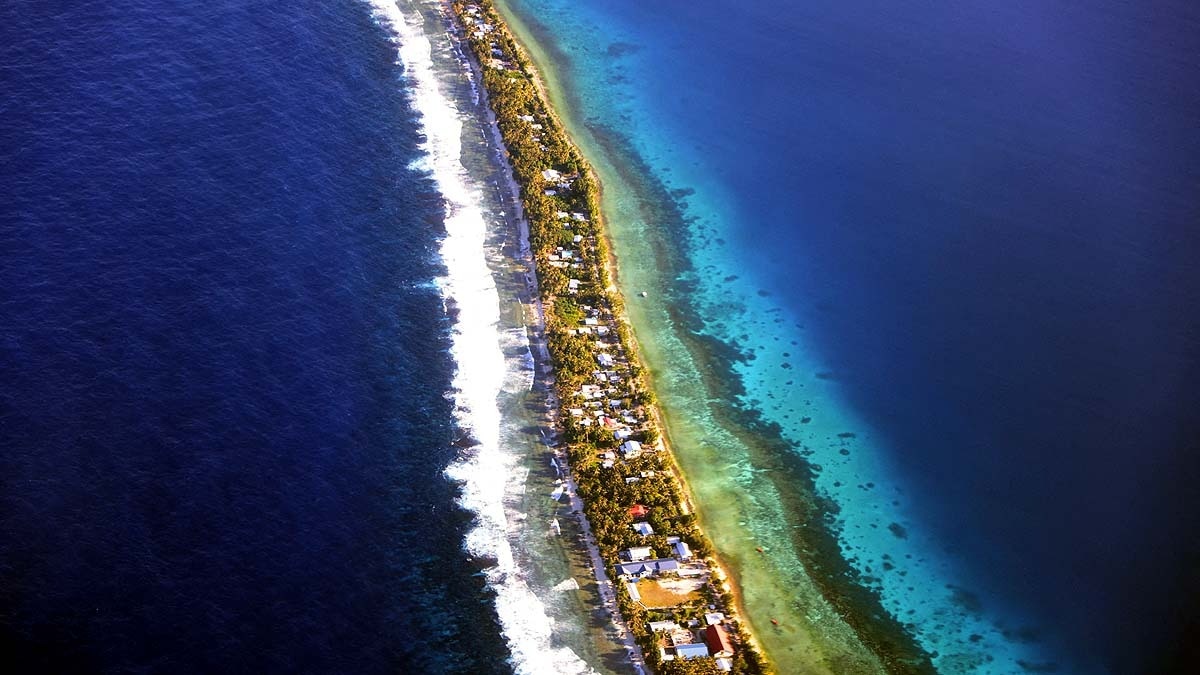 तुवालु जो ऑस्ट्रेलिया और हवाई के बीच स्थित है. नौ निचले एटॉल (मूंगा भित्तियों से घिरे द्वीप) से बना है. इसकी औसत ऊंचाई महज 6 फीट (2 मीटर) है. सबसे ऊंचा बिंदु भी सिर्फ 15 फीट (4.5 मीटर) है.