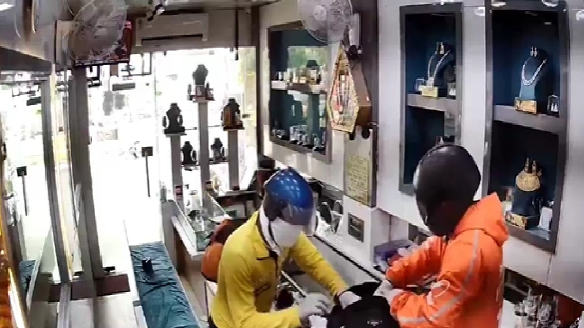 उत्तर प्रदेश में गाजियाबाद के थाना लिंक रोड क्षेत्र स्थित ब्रिज विहार कॉलोनी में उस वक्त हड़कंप मच गया जब दिनदहाड़े दो हथियारबंद बदमाशों ने एक ज्वेलर्स की दुकान में धावा बोलते हुए बड़ी लूट की वारदात को अंजाम दिया. बदमाश दुकान से लगभग 20 किलो चांदी, 125 ग्राम सोना और ₹20,000 की नगदी लूटकर फरार हो गए. घटना का सीसीटीवी फुटेज सामने आया है.