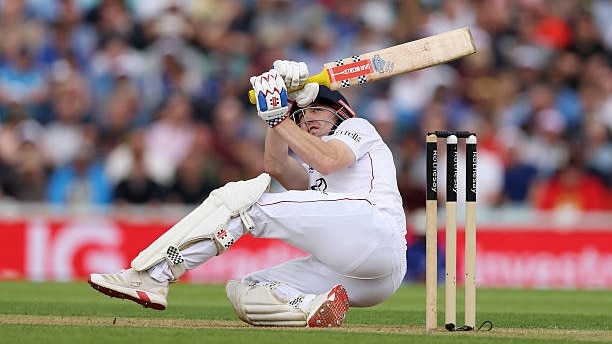 हैरी ब्रूक के इस शॉट ने टीम इंडिया के विकेटकीपर बल्लेबाज ऋषभ पंत की याद दिला दी है. पंत भी कुछ इसी तरह ‘लेटकर’ शॉट खेलते नजर आ जाते हैं. हैरी ब्रूक के शॉट को देखकर इंग्लैंड के नियमित टेस्ट कप्तान बेन स्टोक्स सन्न रह गए. स्टोक्स का रिएक्शन वायरल हो गया, जो इंजरी के चलते इस मुकाबले में भाग नहीं ले रहे हैं. मैदान पर मौजूद फैन्स भी हैरी ब्रूक के इस शॉट को देखकर चकित थे.