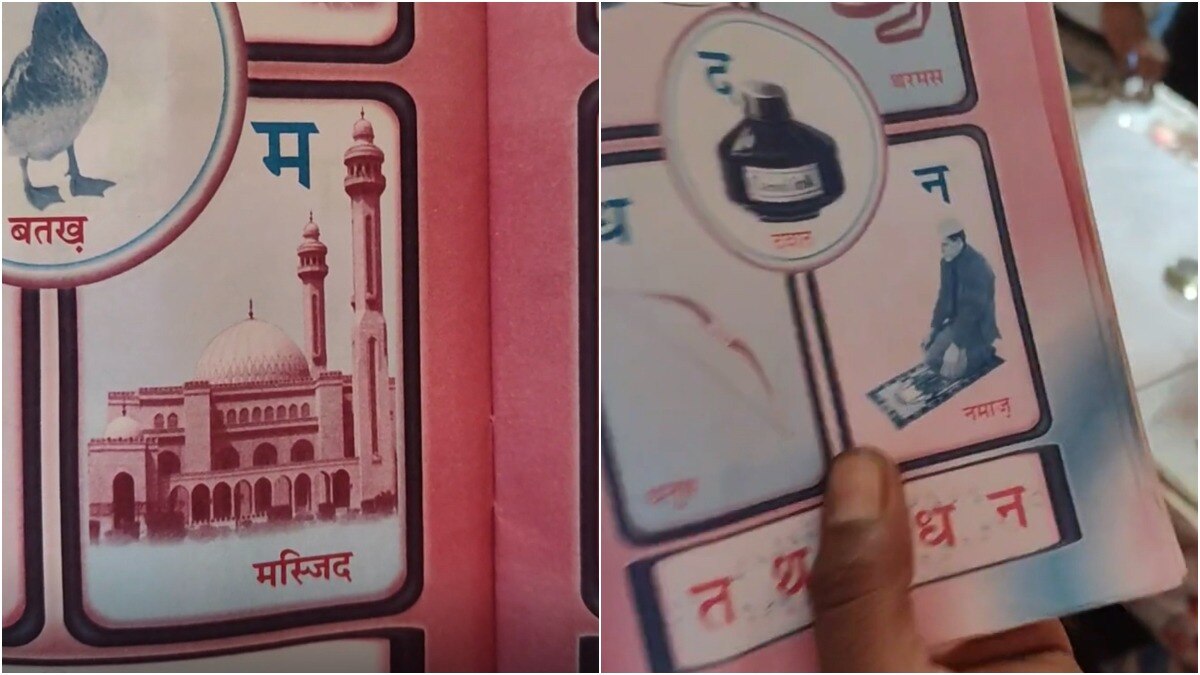 रायसेन के बेबी कान्वेंट स्कूल में छोटे-छोटे बच्चों की किताब में ‘न’ से नमाज, ‘म’ से मस्जिद लिथा था. वहां ‘औ’ से औरत लिखा हुआ था, जिसके चित्र में हिजाब पहने एक महिला थी. पूरे मामले का खुलासा नर्सरी में पढ़ने वाले बच्चे की किताब से हुआ जब उसके परिजन घर पर उसे पढ़ाने बैठे.