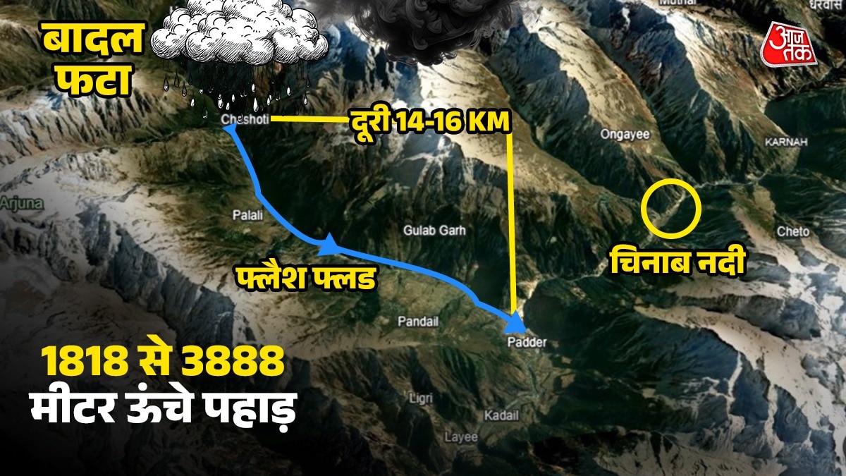 - चिनाब नदी: यह नदी किश्तवाड़ से होकर बहती है और पहाड़ों से आने वाले पानी को समेटती है. बादल फटने से इसका जलस्तर अचानक बढ़ गया.