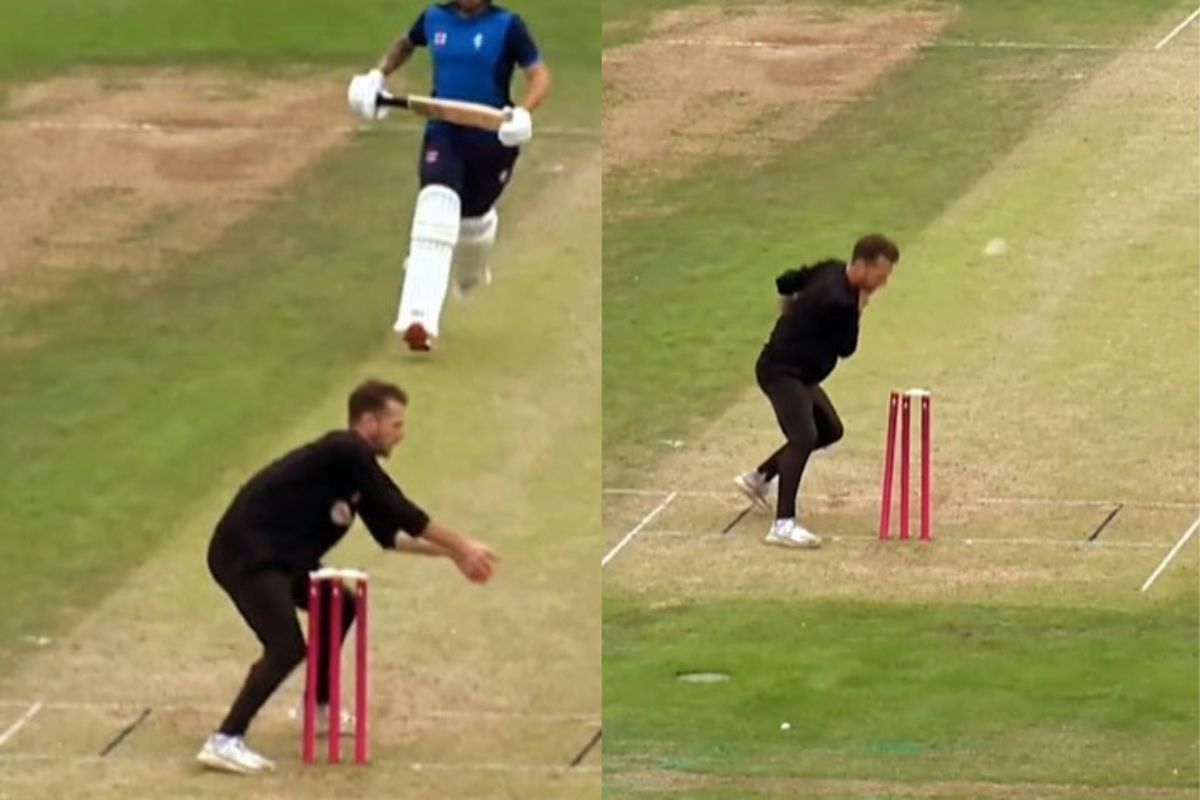 वीडियो में देखा जा सकता है कि बल्लेबाज रन लेने के लिए दौड़ता है लेकिन बीच में ही उम्मीद छोड़कर वापस लौटने लगता है. दूसरी तरफ फील्डर तेजी से गेंद फेंकता है. लेकिन इससे पहले कि गेंदबाज गेंद को पकड़ पाता, उसके हाथ से ही विकेट की बेल्स गलती से गिर जाती हैं. यहीं से कहानी दिलचस्प मोड़ लेती है.