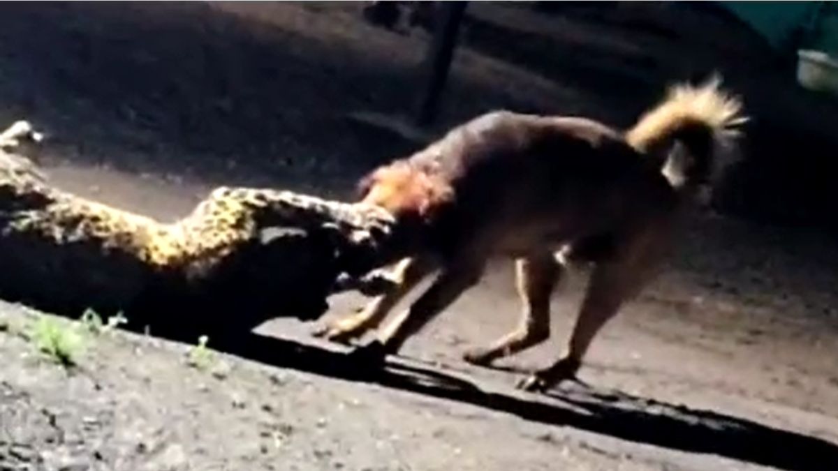 जानकारी के अनुसार, यह मामला नासिक के निफाड़ तालुका के नंदूर मध्यमेश्वर इलाके का है. यहां गंगुर्दे बस्ती में तेंदुए और कुत्तों के बीच संघर्ष हो गया, जिसका वीडियो सामने आया है. वीडियो में देखा जा सकता है कि तेंदुआ कुत्तों पर हमला करने की नीयत से आया, लेकिन यह कोशिश उसके लिए भारी पड़ गई. कुत्तों ने पलटवार करते हुए तेंदुए को घेर लिया. एक कुत्ते ने उसके मुंह को अपने जबड़े में दबोच लिया. कुत्ते ने इतनी ताकत से पकड़ बनाई कि तेंदुआ हिल तक नहीं पाया. कुत्ता उसे मुंह में दबाकर करीब 300 मीटर तक घसीट ले गया.