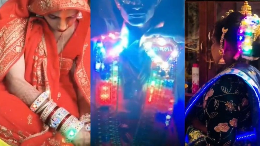 दूसरे वीडियो में एक और दुल्हन बेहद अलग अंदाज़ में नजर आ रही है. उसने भारी-भरकम लहंगा पहना हुआ है, जिसे रंग-बिरंगी लाइटों से सजाया गया है. उसके पास खड़ी एक महिला उसे संभालते हुए दिख रही है. यह नजारा पूरी तरह मॉडर्न और आकर्षक है, जहां पारंपरिक दुल्हन के लुक में टेक्नोलॉजी का तड़का लगाया गया है. वीडियो में आप देख सकते हैं कि महिला ने अपने कपड़ों से लेकर बालों तक को लाइट से सजा रखा है.