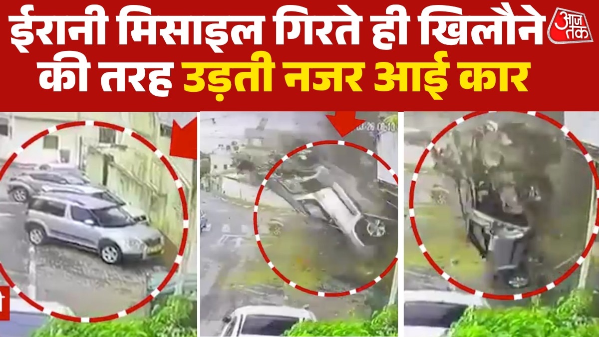 CCTV: इजरायल के शहर काफर कसीम पर ईरानी मिसाइल अटैक, खिलौने की तरह उड़ती दिखी कार