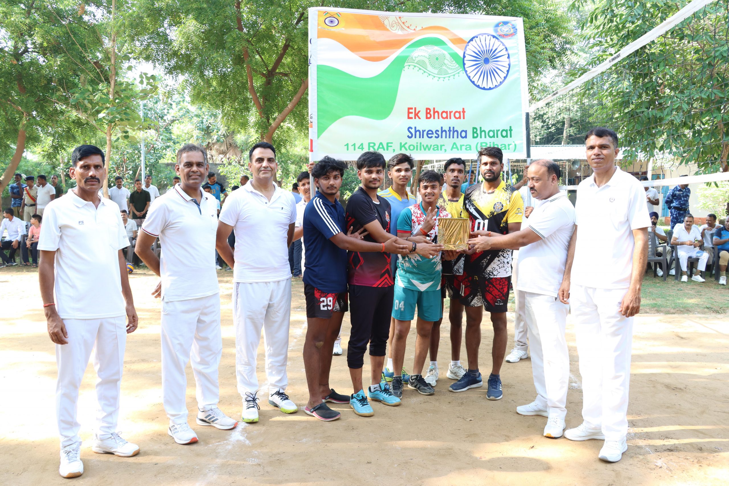 कोईलवर स्थित 114वीं आरएएफ बटालियन मुख्यालय के खेल मैदान में “एक भारत श्रेष्ठ भारत ” अभियान के अंतर्गत वॉलीबॉल मैच का आयोजन किया गया. “एक भारत श्रेष्ठ भारत ” अभियान की भावना को प्रोत्साहित करने एवं नागरिकों के साथ संबंधों को और प्रगाढ़ करने के उद्देश्य से 114 रैपिड एक्शन फोर्स द्वारा इस वॉलीबॉल मैच का आयोजन सामुदायिक संपर्क कार्यक्रम के अंतर्गत किया गया. इस आयोजन में कोईलवर तथा आसपास के क्षेत्र के टीमों ने बढ़-चढ़ कर हिस्सा लिया और खेल भावना के साथ शानदार प्रदर्शन किया. साथ ही सामाजिक समरसता, एकता और भाईचारे का भी परिचय दिया. इधर आयोजित टूर्नामेंट में आरएएफ की टीम के साथ नागरिकों की ओर से कोईलवर नरही समेत अन्य टीमों ने हिस्सा लिया. टीमों के बीच हुए रोमांचक मुकाबले में सभी टीमों और खिलाड़ियों ने बेहतर खेल का परिचय दिया. इधर सभी टीमों के बीच हुए मुकाबले में नरही की टीम ने सभी टीमों को हराकर विजय पायी. विजयी टीम को आरएएफ की ओर से पुरस्कार देकर सम्मानित किया गया.डिस्क्लेमर: यह प्रभात खबर समाचार पत्र की ऑटोमेटेड न्यूज फीड है. इसे प्रभात खबर डॉट कॉम की टीम ने संपादित नहीं किया है
