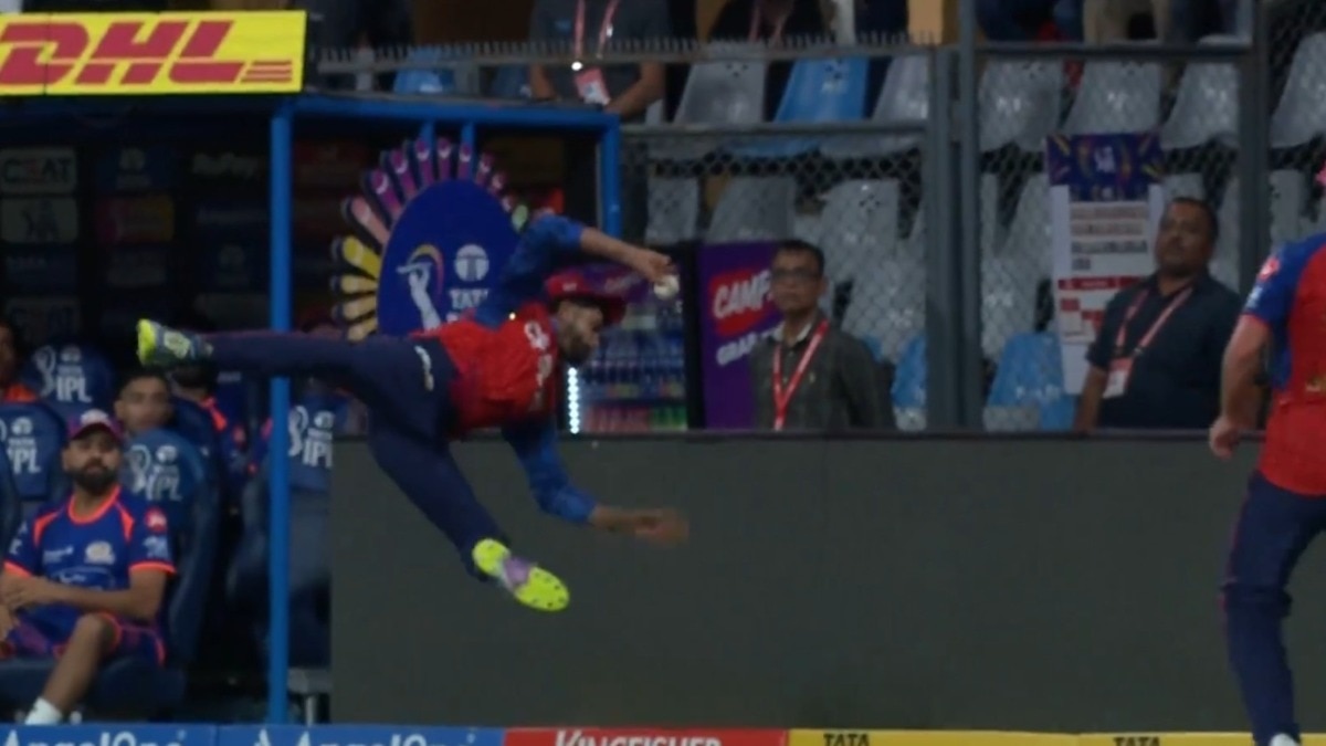 डगआउट में बैठे सूर्यकुमार यादव इस कैच को देखकर हैरान रह गए, जबकि उनके बगल में बैठे रोहित शर्मा ने भी हाथ ऊपर उठाकर इस प्रयास पर अविश्वास जताया.