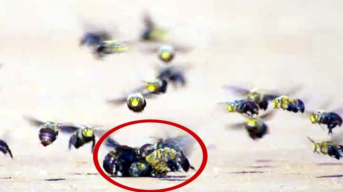ऑस्ट्रेलिया के रेगिस्तानी इलाकों में एक अनोखा और खतरनाक दृश्य देखने को मिल रहा है. डॉसन बुरोइंग मधुमक्खी (Dawson’s burrowing bee) की मादा लगभग एक साल तक जमीन के नीचे छिपी रहती है. जैसे ही वह सतह पर निकलती है, दर्जनों नर मधुमक्खियां उस पर टूट पड़ती हैं.
