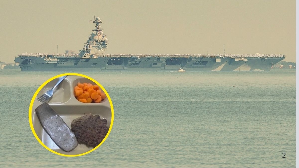 अमेरिकी युद्धपोत USS त्रिपोली और USS अब्राहम लिंकन पर तैनात यूएस मरीन अपने परिवार वालों को खाने की जो थाली शेयर कर रहे हैं, वो अब इंटरनेट पर भी वायरल हो रहा है. इससे पता चलता है कि अमेरिकी सेना वर्तमान में किस मानसिक दबाव से गुजर रही है और ईरान वॉर उन्हें तोड़ता जा रहा है.ऐसे में जानते हैं महीनों से समुद्र में तैनात अमेरिकी युद्धपोतों पर मौजूद यूएस मरीन को आखिर किस तरह का खाना मिल रहा है, जिसको लेकर इतनी चर्चा हो रही है.