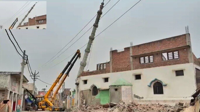 संभल में मस्जिद की 35 फीट ऊंची मीनार ध्वस्त, दो हाइड्रा मशीन लगाकर गिराई गई – 35 Foot Tall Mosque Minar Demolished in Sambhal by Using Hydra Machines lclam