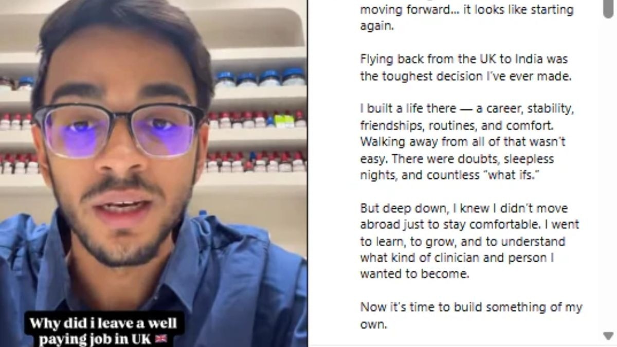 ब्रिटेन में 40 लाख रुपये प्रति साल की नौकरी छोड़ने के एक युवा फिजियोथेरेपिस्ट के फैसले ने ऑनलाइन सुर्खियां बटोरी हैं और बहस छेड़ दी है. ऐसे समय में जब विदेश में काम करना करियर में एक बड़ी उपलब्धि माना जाता है, उन्होंने अपने करियर की शुरुआत में ही भारत लौटने का फैसला किया. उनके इस कदम से अब पैसे, आजादी और आज के समय में सफलता का मतलब क्या है, जैसे सवालों पर चर्चा शुरू हो गई है.
