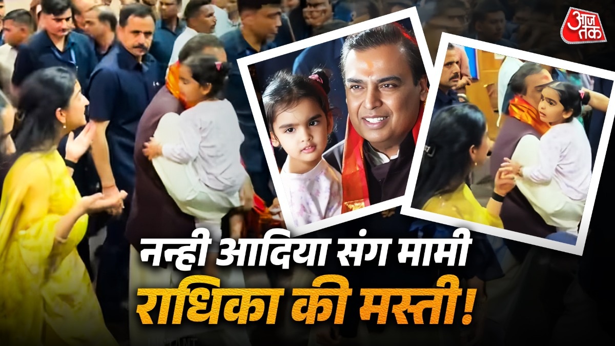 रिलायंस इंडस्ट्रीज के चेयरमैन और भारत के सबसे अमीर व्यक्ति मुकेश अंबानी ने 19 अप्रैल 2026 को अपना जन्मदिन बेहद सिंपल और भक्तिमय अंदाज में मनाया. इस खास मौके पर उन्होंने अपने पूरे परिवार के साथ मुंबई के प्रसिद्ध सिद्धिविनायक मंदिर में बप्पा के सामने माथा टेका और आशीर्वाद लिया. सोशल मीडिया पर इसकी तस्वीरें और वीडियो तेजी से वायरल हो रहे हैं, जिसमें अंबानी परिवार का सादगी भरा अंदाज नजर आ रहा है. वायरल होती वीडियोज में एक वीडियो ऐसा है, जिसमें अंबानी परिवार की छोटी बहू राधिका मर्चेंट, ननद ईशा की बेटी आदिया संग मस्ती करती नजर आ रही हैं. मामी-भांजी का वीडियो लोगों का दिल चुरा रहा है.