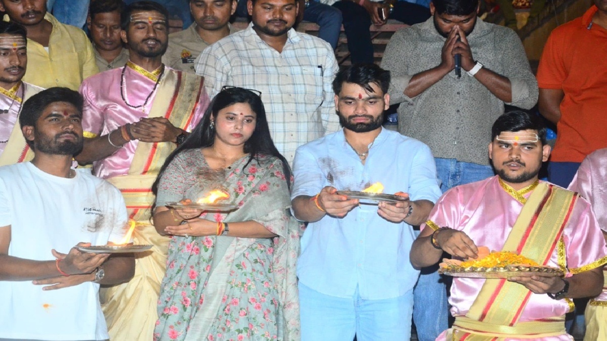 गंगा आरती के दौरान रिंकू सिंह और प्रिया सरोज ने मां गंगा की पूजा-अर्चना भी की. दोनों ने घाट पर लगभग एक घंटे तक समय बिताया. इस दौरान उन्होंने धार्मिक माहौल का अनुभव किया और पूरे समय शांत भाव से आरती का आनंद लिया.