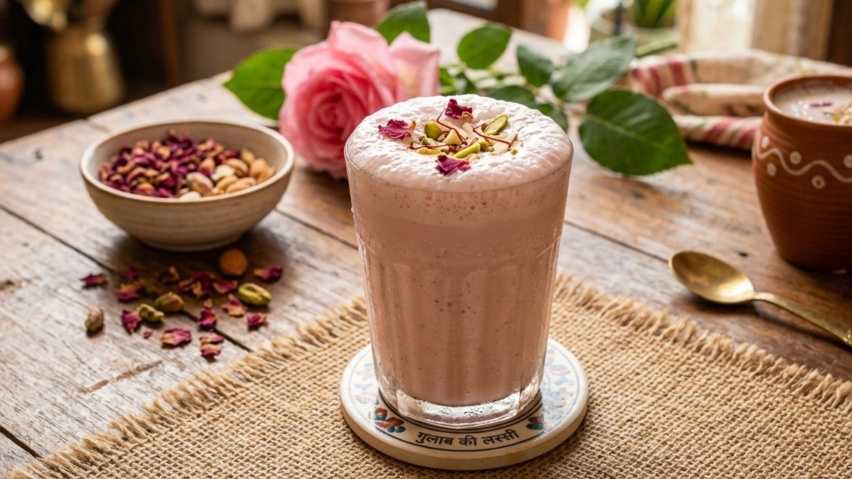 उत्तर भारत की तपती गर्मी में लस्सी एक ऐसी ड्रिंक है जो हर घर, ढाबे, रेस्ट्रॉन्ट और होटेल में बनती है और लोग इसे खूब पीते हैं. लेकिन अक्सर हम वही पुरानी सादी लस्सी पी-पीकर बोर हो जाते हैं इसलिए क्यों ना आप गुलाब की लस्सी को ट्राई करें. गुलाब न केवल अपनी खुशबू के लिए जाना जाता है बल्कि इसकी तासीर बेहद ठंडी होती है जो लू और एसिडिटी से बचाने में कारगर है.