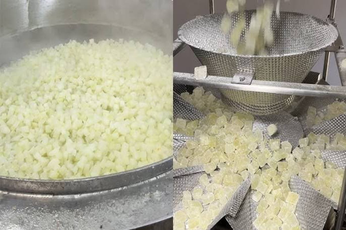 पेठा मुख्य रूप से कद्दू, चीनी और पानी से बनाया जाता है. इसे पहले चूने के पानी में भिगोया जाता है ताकि इसका टेक्सचर नर्म बना रहे. फिर इसे चीनी की चाशनी में पकाया जाता है, जिससे मिठाई में मिठास और चमक दोनों आ जाती है.