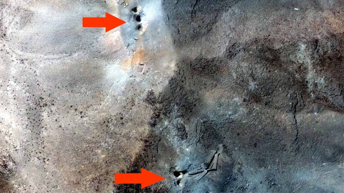 मैक्सार तस्वीरें: 6 क्रेटर दिखाते हैं कि बमों ने ऊपरी रिज को भेदा, लेकिन गहरे बंकरों का नुकसान अस्पष्ट है.